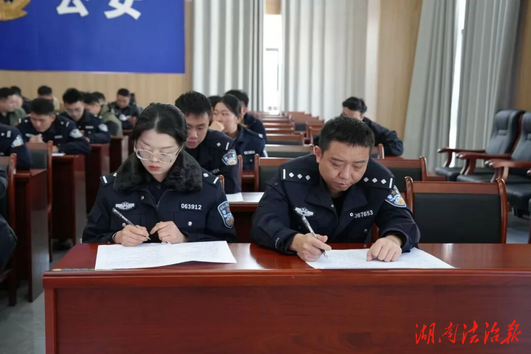 理論測(cè)試緊密結(jié)合公安工作實(shí)際內(nèi)容,涵蓋法律法規(guī)、警務(wù)實(shí)戰(zhàn)技能、執(zhí)法規(guī)范化等多個(gè)方面,全面檢驗(yàn)民警對(duì)專(zhuān)業(yè)知識(shí)的掌握程度與綜合運(yùn)用能力??紙?chǎng)上民警們沉著冷靜、認(rèn)真作答展現(xiàn)出扎實(shí)的理論功底和嚴(yán)謹(jǐn)?shù)膶W(xué)風(fēng)