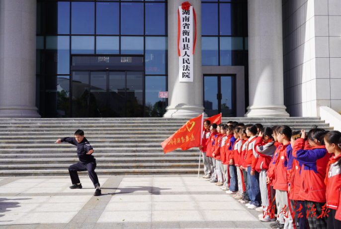 湖南法治報(bào)訊(通訊員 賓鳳梧 李潔)為學(xué)習(xí)宣傳貫徹習(xí)近平法治思想,推動(dòng)憲法深入人心,11月27日,在第十二個(gè)國(guó)家憲法日前夕,衡山縣人民法院邀請(qǐng)景賢小學(xué)40余名師生走進(jìn)法院,通過“警械展演+現(xiàn)場(chǎng)普法+庭審介紹+知識(shí)競(jìng)賽”的“沉浸式”體驗(yàn)?zāi)J?,讓憲法精神以生?dòng)的方式走進(jìn)青少年心中。
