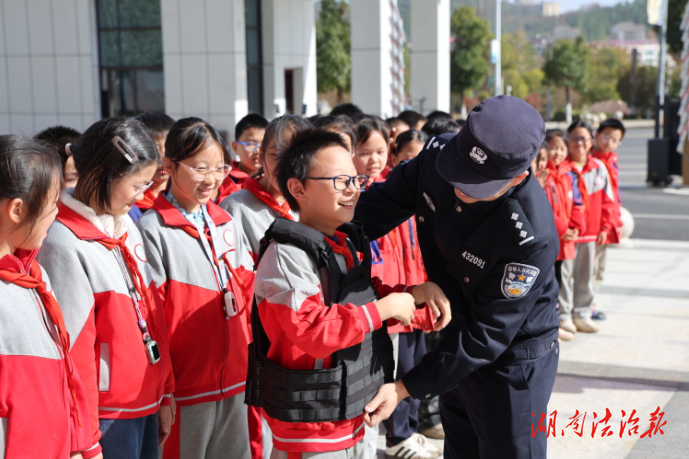圖:法警為學(xué)生試穿多功能戰(zhàn)術(shù)背心