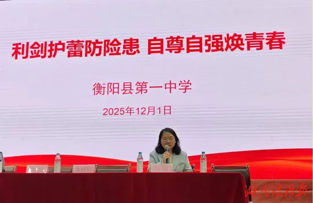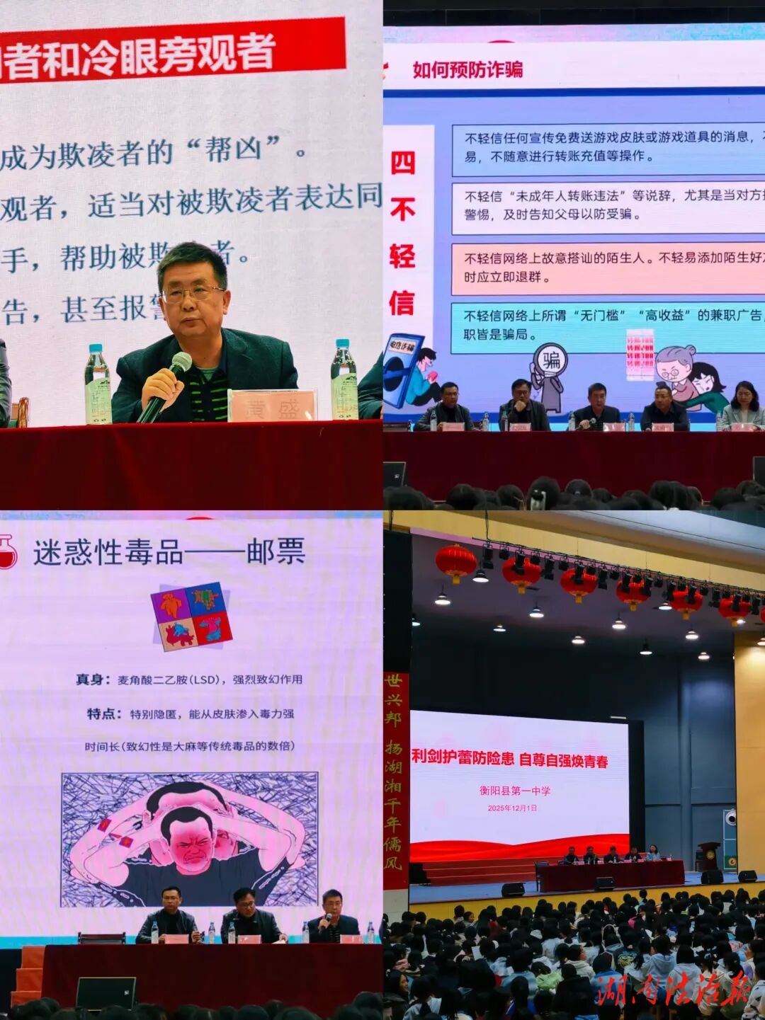 銀杏鍍金,窗扉含碧,落筆驚冬聲簌簌。為增強(qiáng)學(xué)生的防范意識(shí),筑牢安全防線,12月1日下午,我校隆重舉行“利劍護(hù)蕾防險(xiǎn)患,自尊自強(qiáng)煥青春”專題會(huì)議。會(huì)議由朱順利校長主持,特邀衡陽縣政法委副書記黃盛蒞臨指導(dǎo),學(xué)校工會(huì)主席劉國輝、婦委會(huì)主任劉敏、安保處主任李一鳴等部門負(fù)責(zé)人參與了本次活動(dòng)。