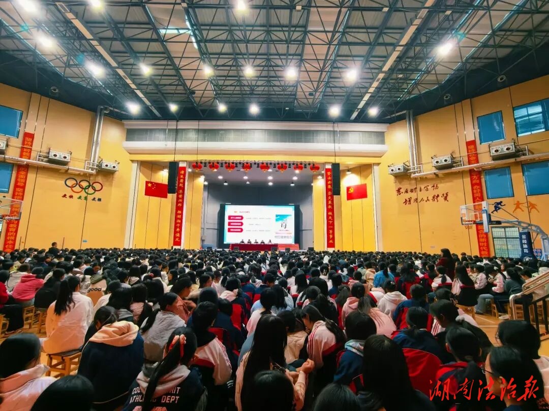 會(huì)議在輕松愉悅、充滿暖意的氛圍中拉開帷幕??h政法委副書記黃盛作《安全進(jìn)校園》專題講座。他以案釋法,剖玄析微,將法律知識(shí)的種子播撒在同學(xué)們心田。從校園欺凌的四態(tài)辨析,到性侵害的預(yù)防應(yīng)對(duì);從新型毒品的危害警示,到網(wǎng)絡(luò)詐騙的識(shí)破之道,黃書記的講解深入淺出,既具法治威嚴(yán),又充滿人文關(guān)懷,為青春成長勘破迷霧,筑牢法治屏障。