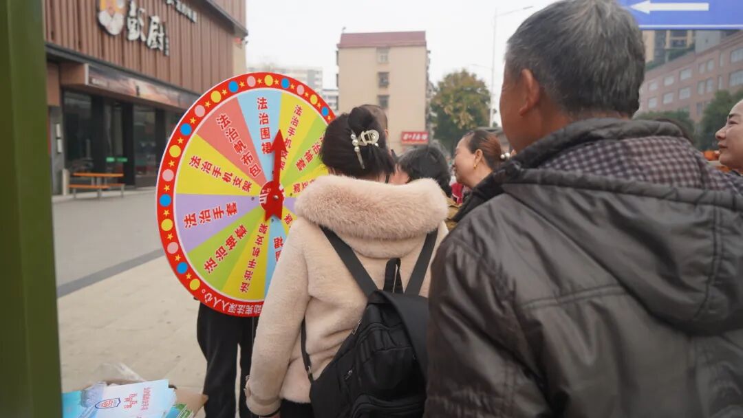 最受群眾歡迎的當(dāng)屬憲法知識(shí)大轉(zhuǎn)盤互動(dòng)環(huán)節(jié)。群眾參與憲法知識(shí)問答后,可通過轉(zhuǎn)動(dòng)轉(zhuǎn)盤獲得精美小禮品。大家踴躍參與、積極搶答,在輕松愉快的氛圍中加深了對憲法知識(shí)的記憶和理解。